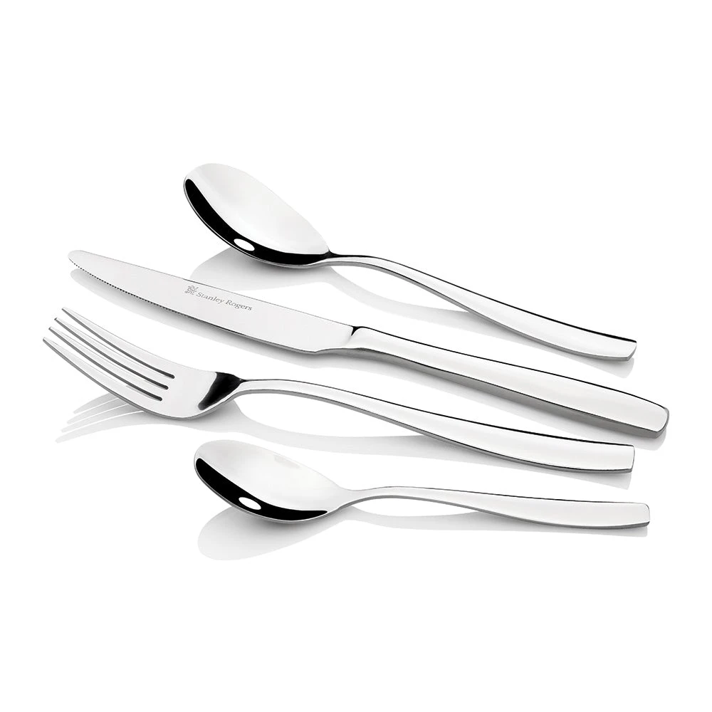 STANLEY ROGERS AMSTERDAM CUTLERY (30pcs/Set). The flared handle is comfortable in the hand while giving a contemporary look to your table. High-quality stainless steel with a mirror finish. 25-year guarantee.
