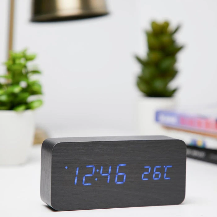Checkmate Spruce LED Wood Cuboid Alarm Clock 15×6.8×3.9cm Black