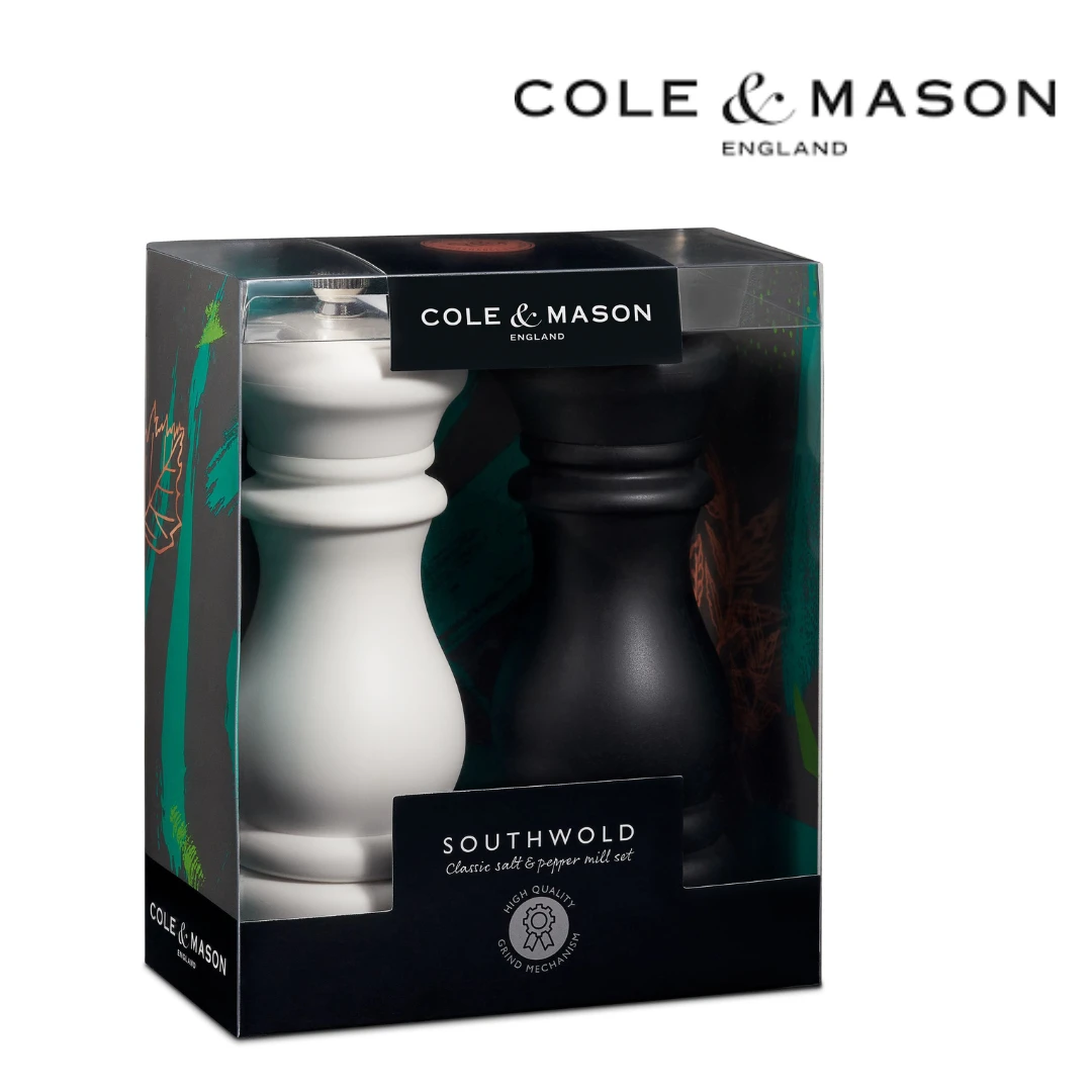 This Cole & Mason Southwold Mills Gift Set 15cm has a black-colored body for pepper and white for salt for convenience. It has also a diamond sharp ceramic mechanism for salt and pepper, textured ABS construction, and salt and pepper mechanisms come with a lifetime guarantee.