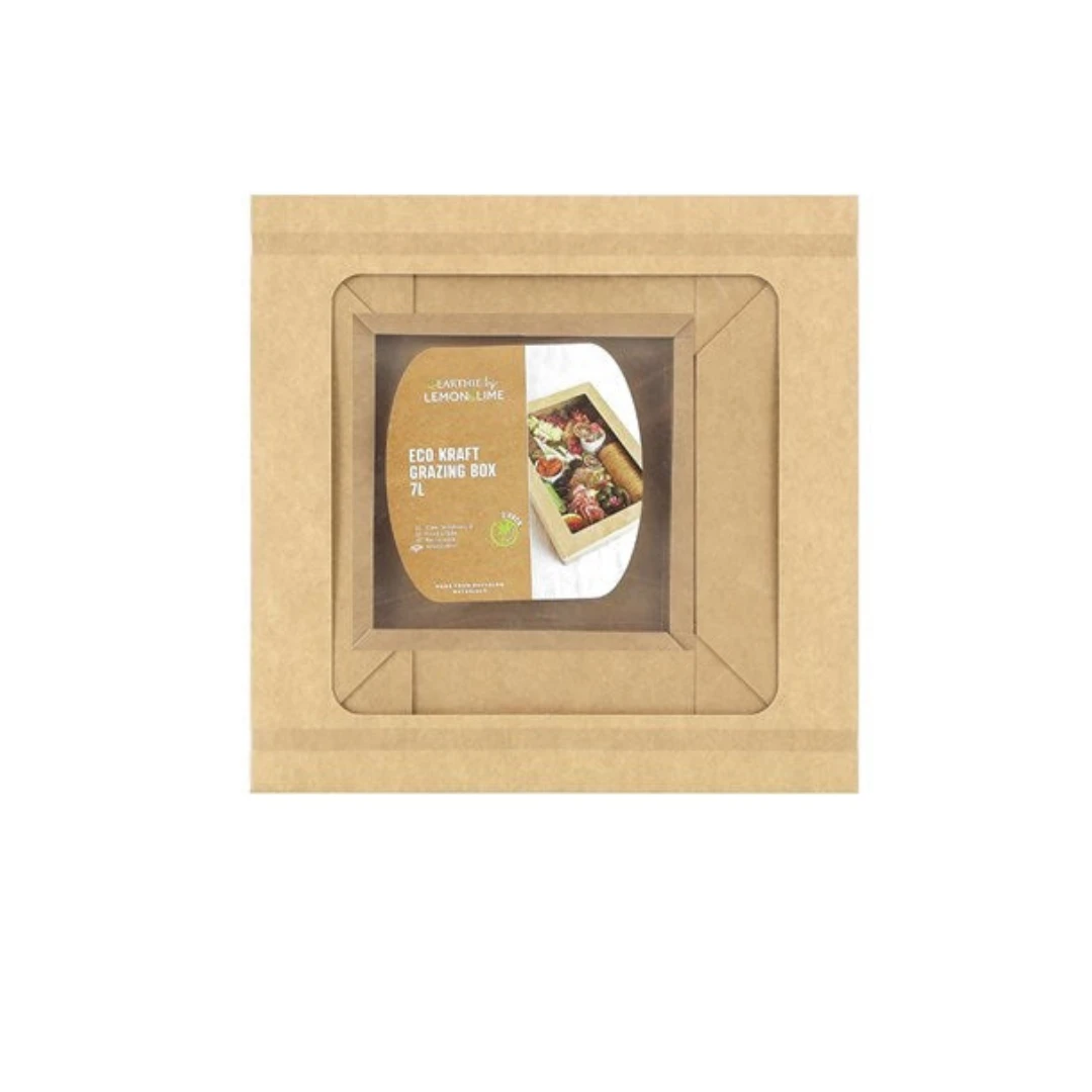 The Lemon & Lime ECO KRAFT GRAZING BOX 7L 3PK 30X30X8CM is used to present food. These Grazing Boxes are not only environmentally sustainable but also fashionable for events and catering.