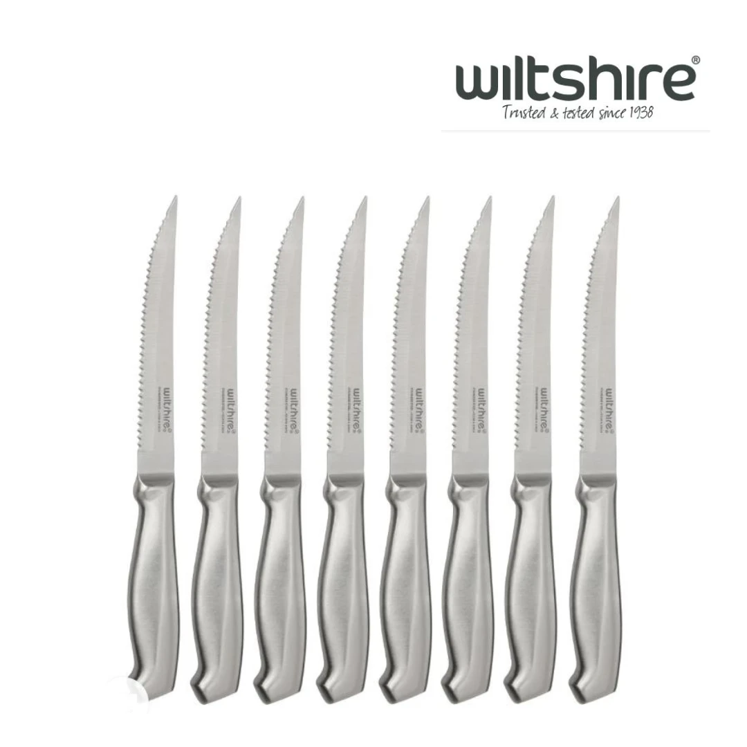 This Knife™ STAINLESS STEEL STEAK KNIFE SET 8PC by Wiltshire, with its comfortable ergonomic handles, has a voracious appetite for cutting through tough meat. And it’s been cleverly designed with high quality stainless steel for a lifetime of rust-resistant use, and a triple rivet handle construction for strength and durability.