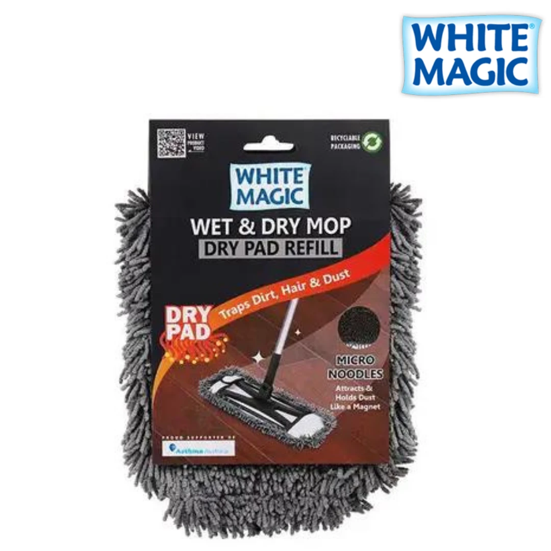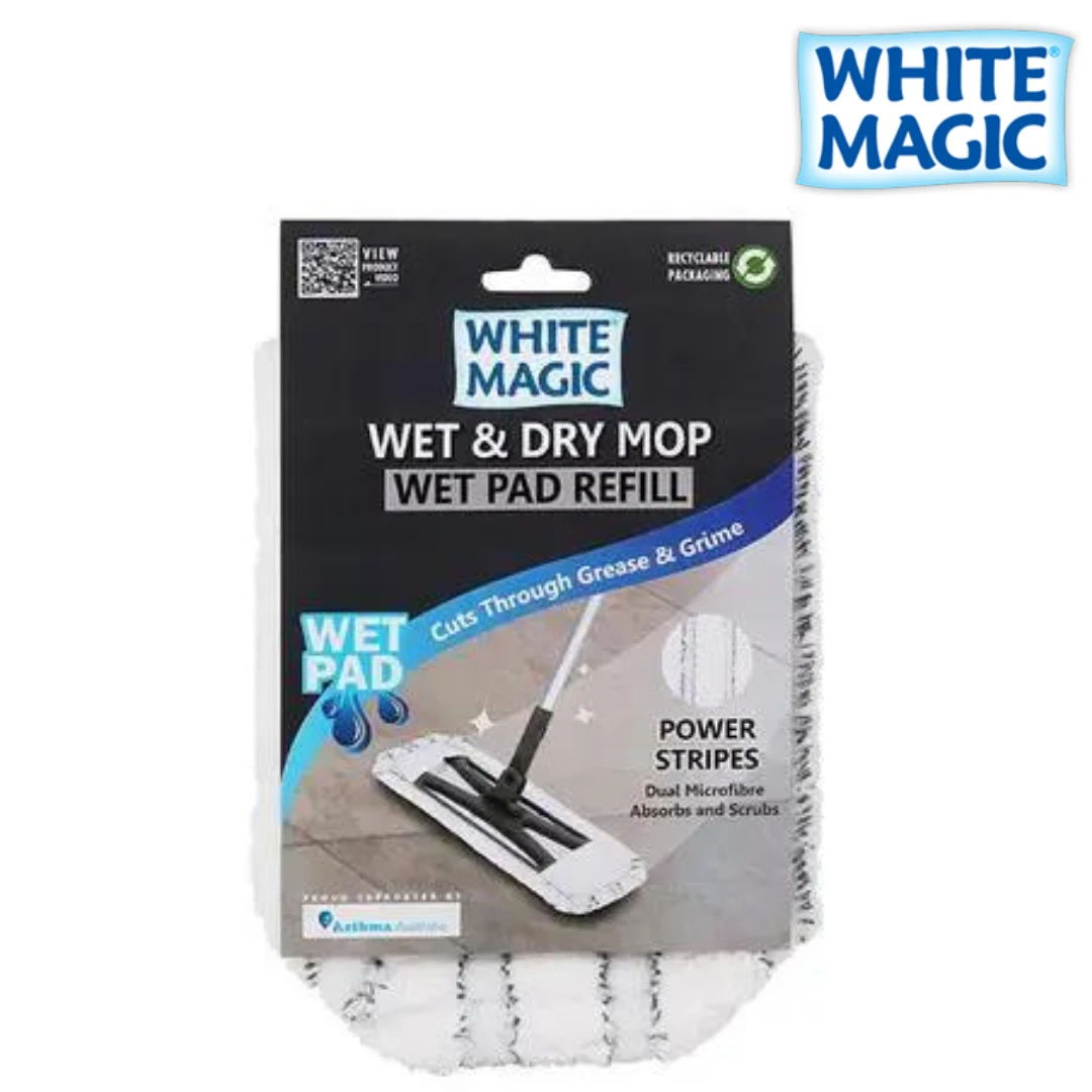 The wet microfibre mop head has extra power fibres to deal with stubborn dirt and grease to save valuable time in a busy household while the fingers of the dry pad will lift dust and pet hair and both are machine washable. Extra wet and dry pads are available for separate purchase.